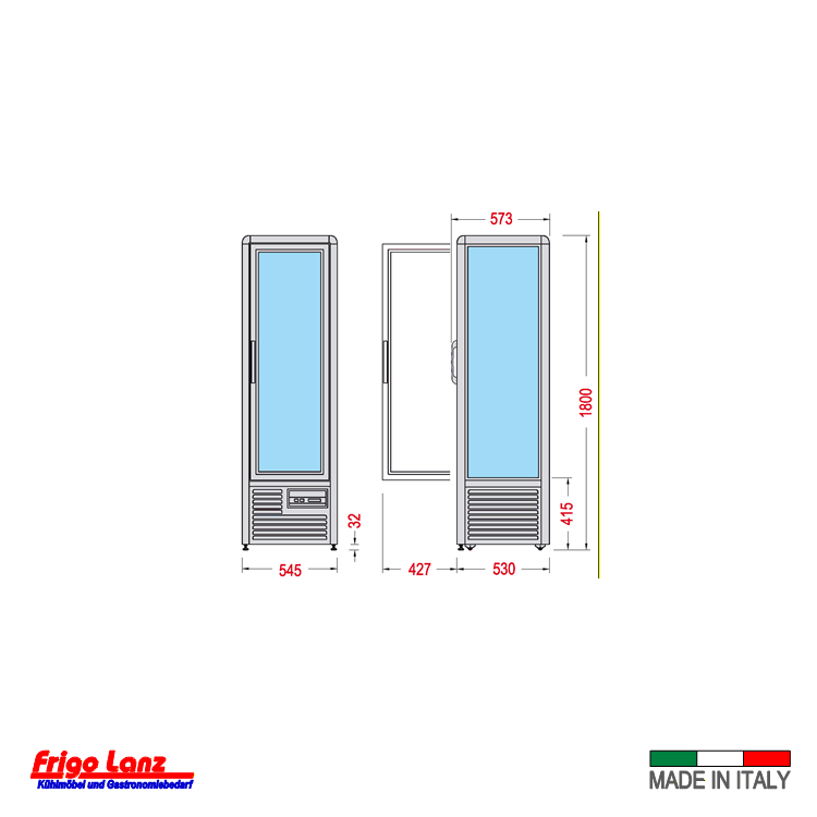Abm.: 550 x 573 x 1800 /H mm