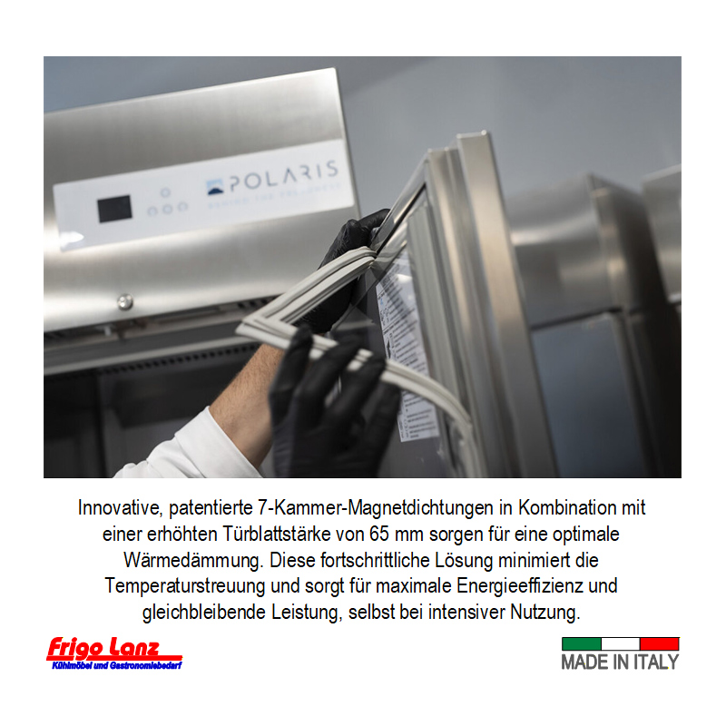 doppeltüriger Glastür-Kühlschrank GN 2/1 steckerfertig – Mod. MM 140 TNV – Temp. -2°/+8°C Abm.: 1400 x 830 x 2080 /H mm Fabr. POLARIS – Serie MasterMax