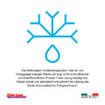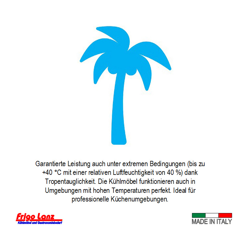 steckerfertig mit Aggregat oben (Monoblocksystem), beschichteter lackierter Verdampfer, automatische Elektro-Abtauung und energiesparender Heißgas-Tauwasserverdunstung, Aufklappbare Aggregatfrontblende für leichtere Reinigung.