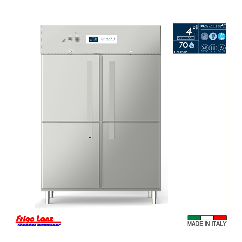 doppeltüriger Kühlschrank mit 4 Halb-Türen GN 2/1 steckerfertig – Mod. MM 144 TNN – Temp. -2°/+8°C Abm.: 1400 x 830 x 2080 /H mm Fabr. POLARIS – Serie MasterMax