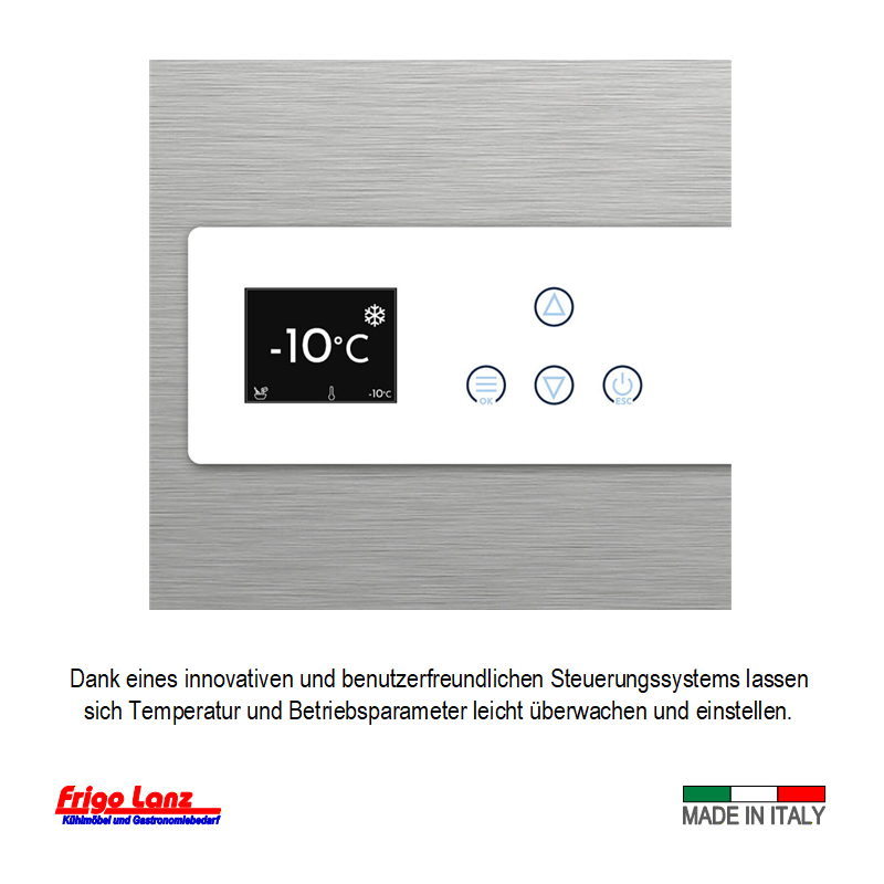 innovatives Kühlsystem mit verdampferfreiem Innenraum – Energieoptimiert, Verbesserte Interne Luftführung für gleichmäßigere Kälteverteilung und konstante Temperaturhaltung, verringerter Kälteverlust bei Türöffnung durch Front-Luftstrom.