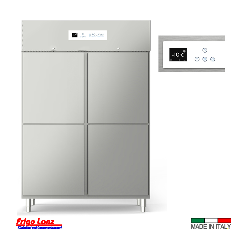 doppeltüriger Tiefkühlschrank mit 4 Halb-Türen GN 2/1 steckerfertig – Mod. R 144 BT – Temp. -15°/-25°C Abm.: 1400 x 830 x 2080 /H mm Fabr. POLARIS – Serie Rocket